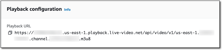 We're going to need the Playback URL for our Amazon IVS Channel. There are a few ways to get this if you don't have it handy already. The first method is to log in to the Amazon IVS Management Console and navigate to the channel that you want to create a playback experience. On the channel details page, scroll down to the Playback configuration panel and copy the Playback URL.