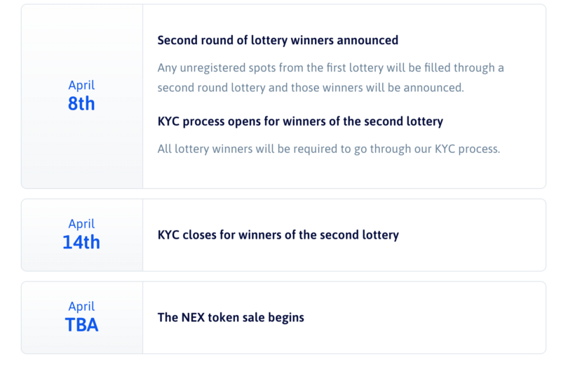 KYC is mandatory for both the rounds of lottery winners (every participant) and price for NEX is same in both the rounds.
