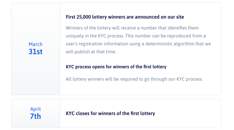 Following are the phases of rollout for their token sale. They’ve got a lottery to participate — which is fair given huge demand and to avoid tiny individual cap. If that doesn’t get filled out (which is very unlikely) — they’re gonna give some more people a chance.