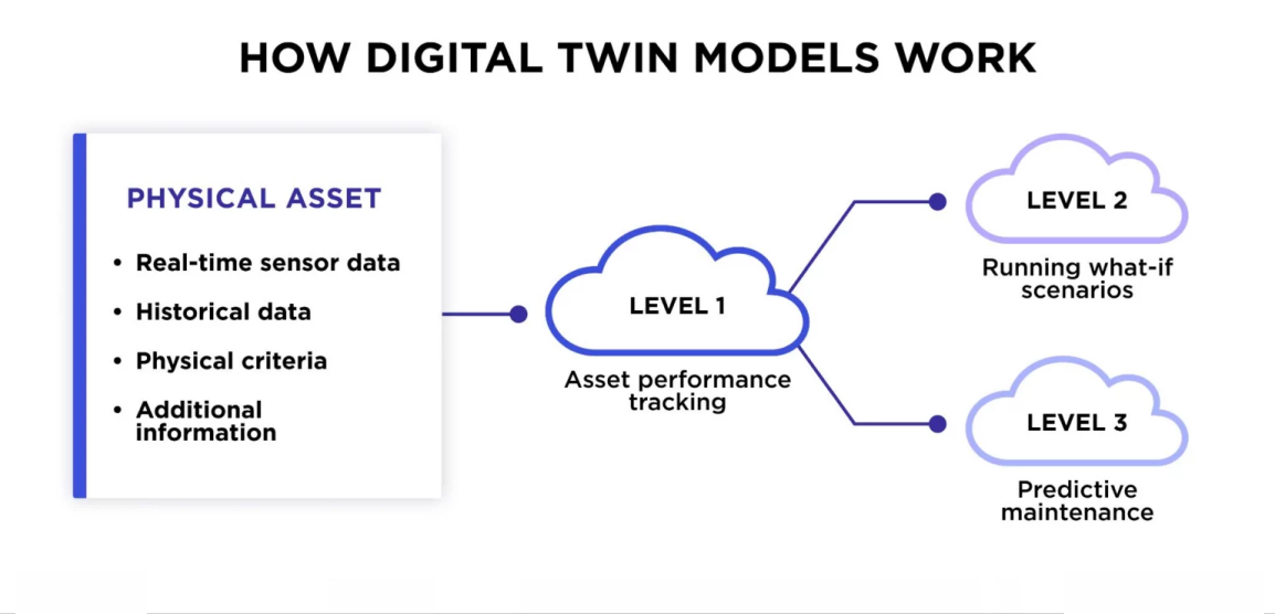 These digital twins combine the Internet of IoT, Big Data, AI, and ML to construct virtual environments. Sensors on physical objects collect real-time and historical data, which is then used in the digital twin.