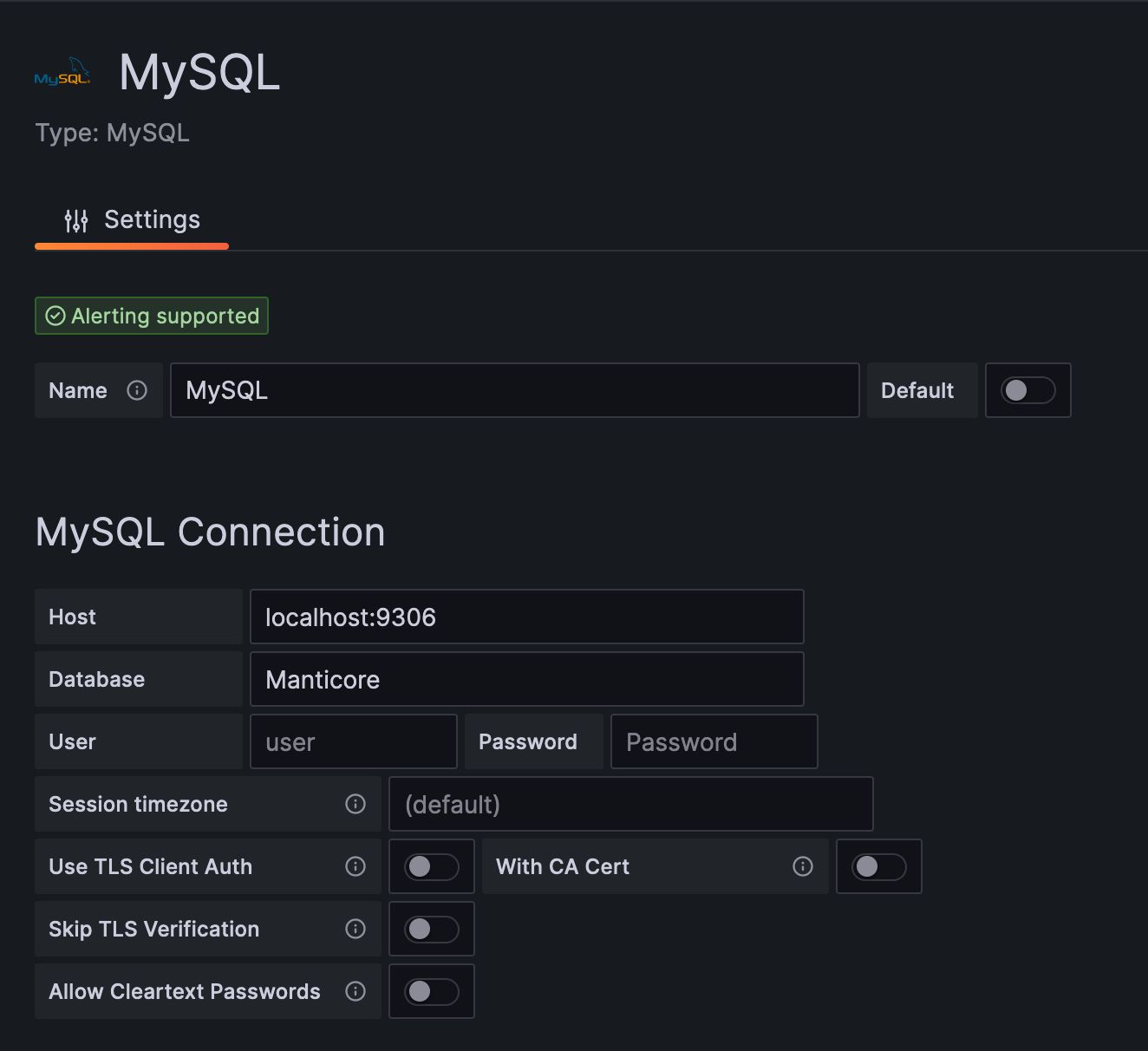 - Name: A name for the data source (e.g., “Manticore Search”).