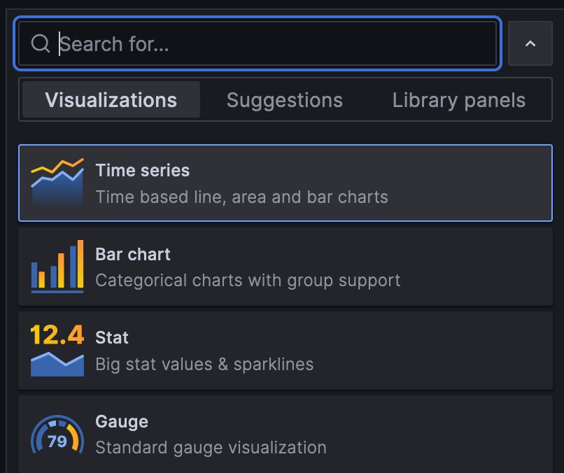 Choose the type of chart you want to create (e.g., bar chart, line chart, pie chart) from the list of available visualization options. We will choose “Time Series”.