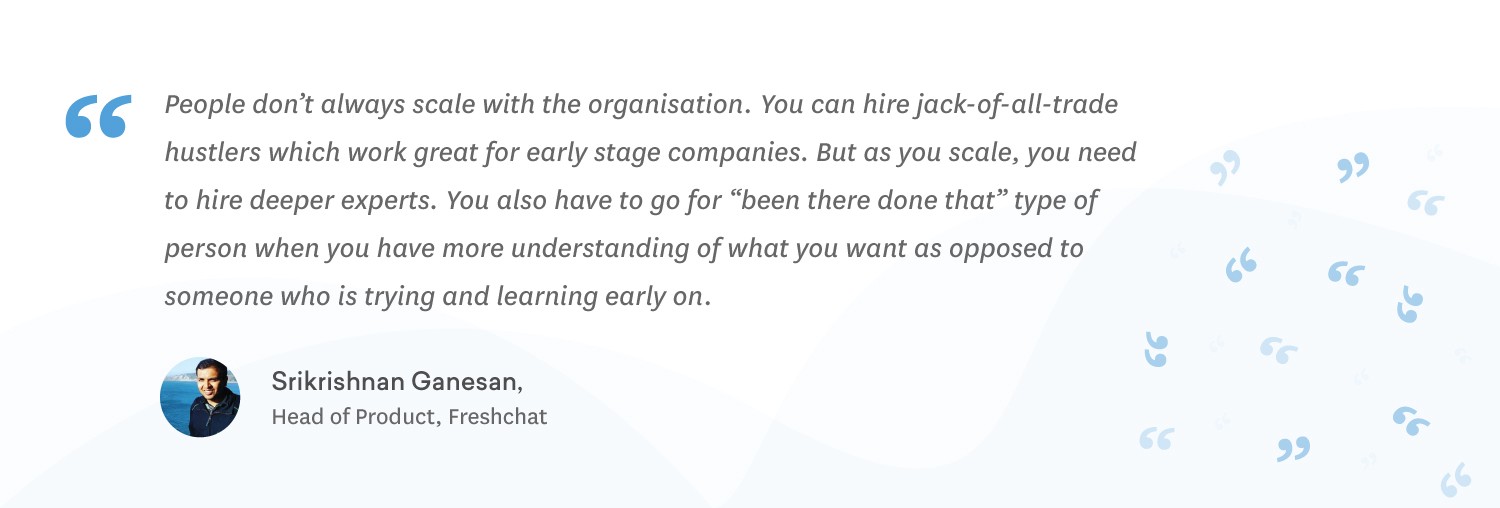As one of the fastest growing product within the Freshworks ecosystem, we factored in growth on the product development, sales, and support, but we didn’t expect the explosive growth we achieved in a short span of time. Of course, when you triple in team size within the first year of your launch, you are bound to have some blind spots along the way. But I think hiring errors are more critical to your business than others because it can metastasize to other aspects of your growth.