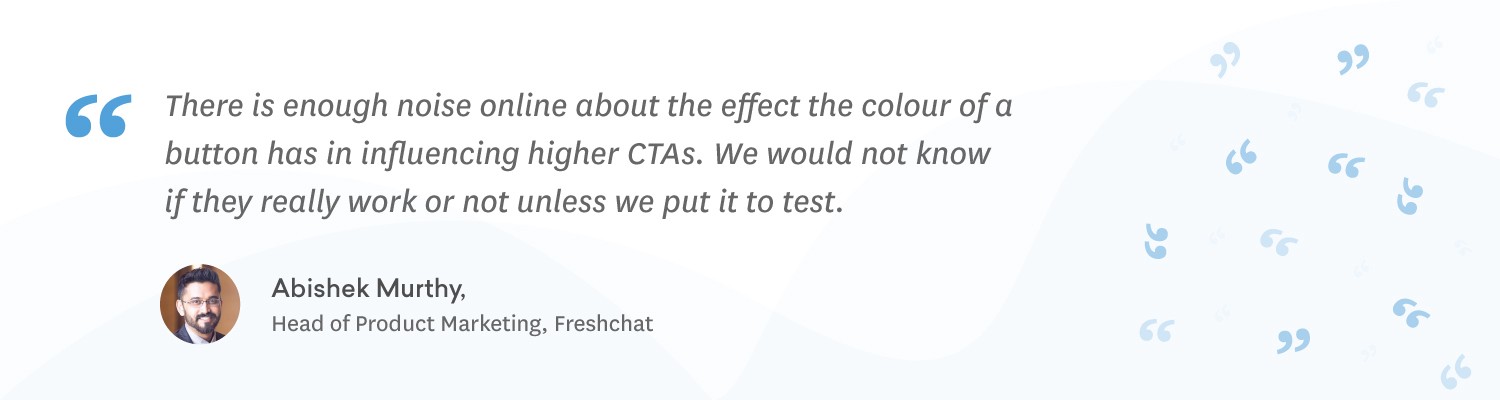 After running the experiment for a while, we circled back again to see what impact it made. We only saw a 0.4% increase in sign-ups in the new color, which was almost in the same range as before and not justifiable enough for us to experiment any further with another ostentatious color. Having a product like Freshmarketer — CRO tool from Freshworks — in our arsenal helped us to fail-fast.