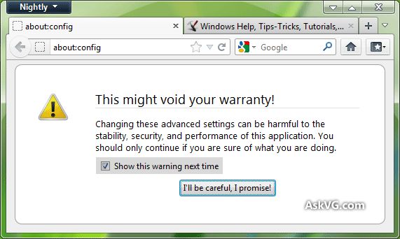 Type about:config into the Firefox address bar and press Enter. This will take you to the advanced configuration settings, where you can modify various aspects of Firefox's behavior.