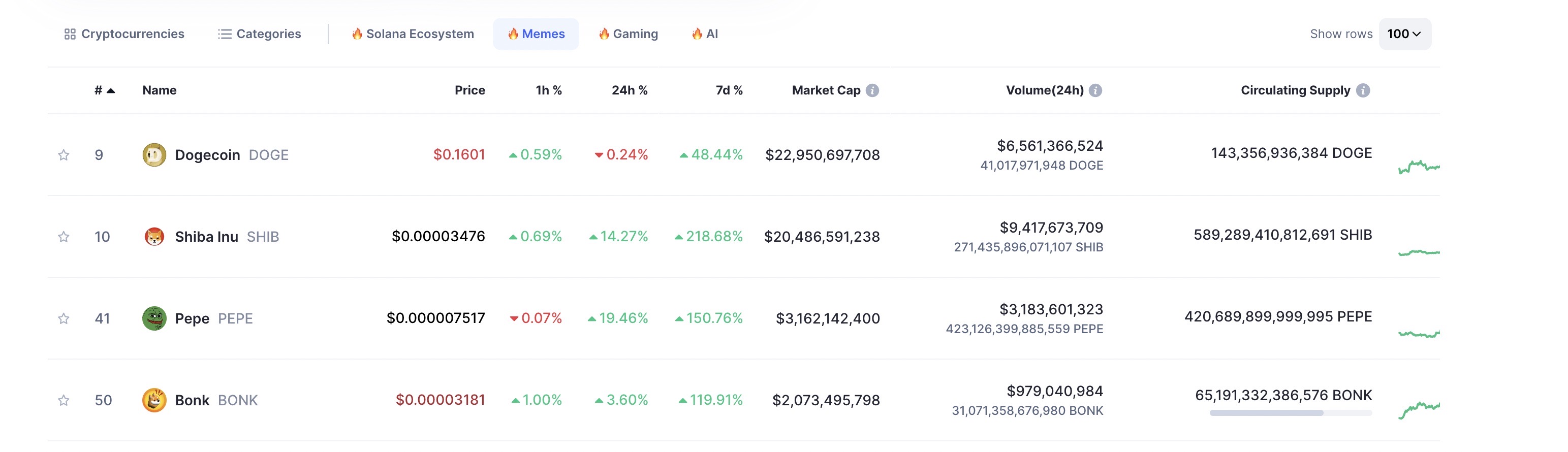 For example Dogecoin, which initially started as a joke based on the popular "Doge" meme, has become one of the most well-known meme coins with a large and active community.