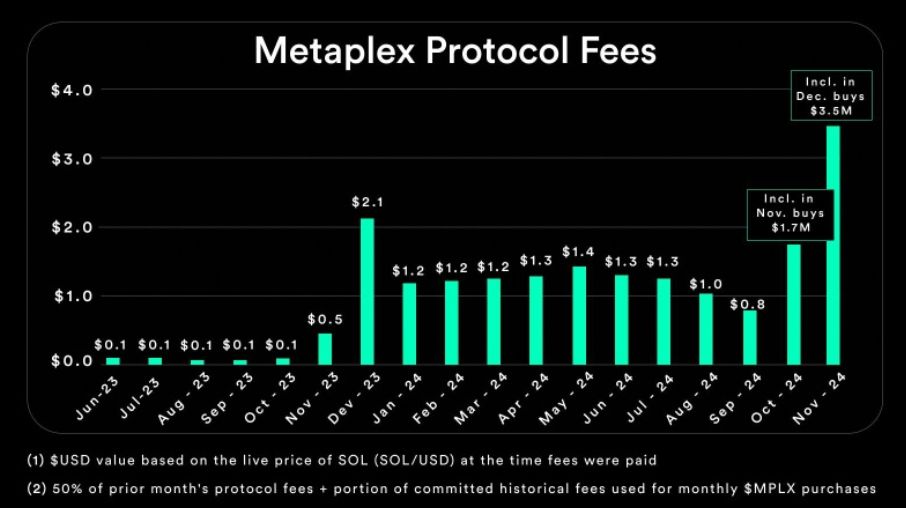 Building on this momentum, Metaplex's November protocol fees hit an all-time high of $3.5 million, setting the stage for even larger allocations for $MPLX purchases in December.