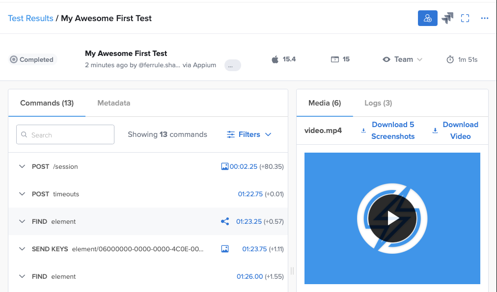 All information that could be helpful for reporting: logs, video, and screenshots is attached after the session is finished.