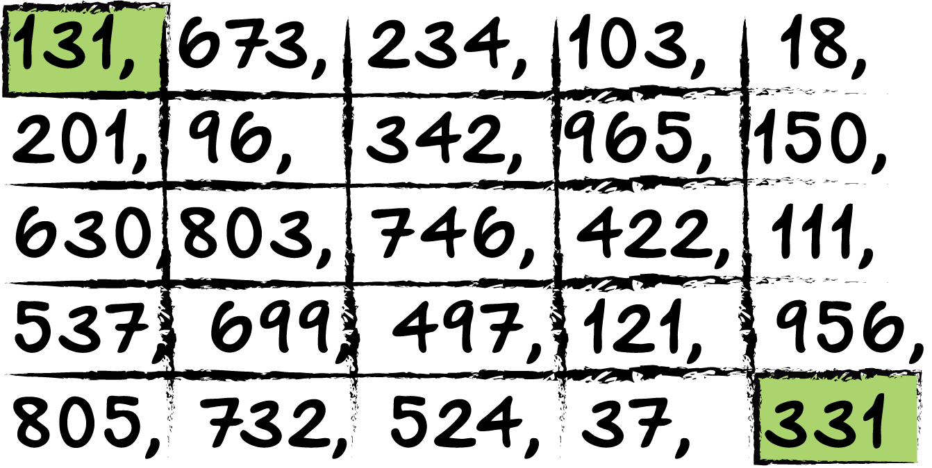 arr = [131, 673, 234, 103, 18, 201, 96, 342, 965, 150, 630, 803,746, 422, 111, 537, 699, 497, 121, 956, 805, 732, 524, 37, 331]