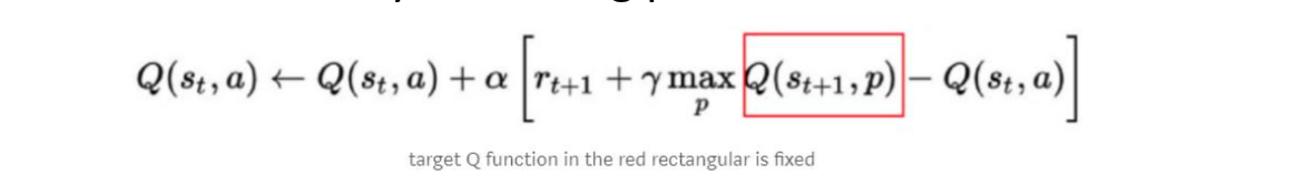 Fixed Target Network:We use a NN to estimate the value of the current state in action-pair and the next, thereby using it multiple times. As we perform the network, we are updating the network. So the target function inside the loss function changes, which causes problems for stability. So we fix the network and only update it say, every 1,000 steps. As we train the network, the Network used to estimate the Target function is kept fixed, resulting in a stable loss function.