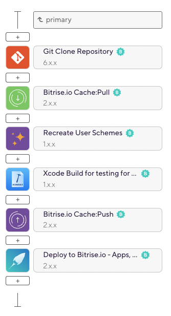 Finally, it’s time to configure our project workflow. Start by navigating to the “Workflow” tab. If you’ve created a new iOS project your workflow will look the same or similar to the following by default.