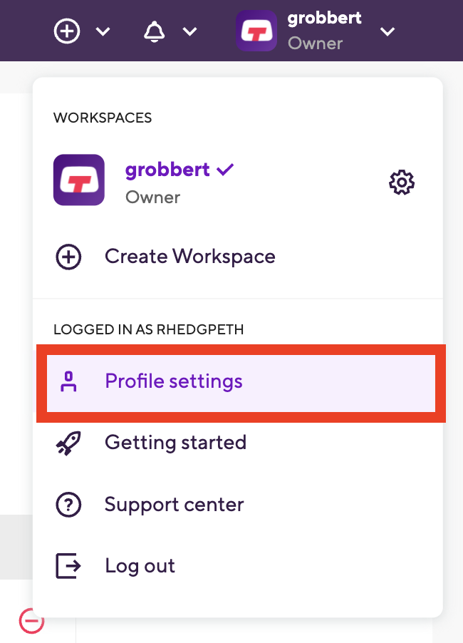 Once you’ve logged into your Bitrise account navigate to your “Profile settings” within your user context menu.