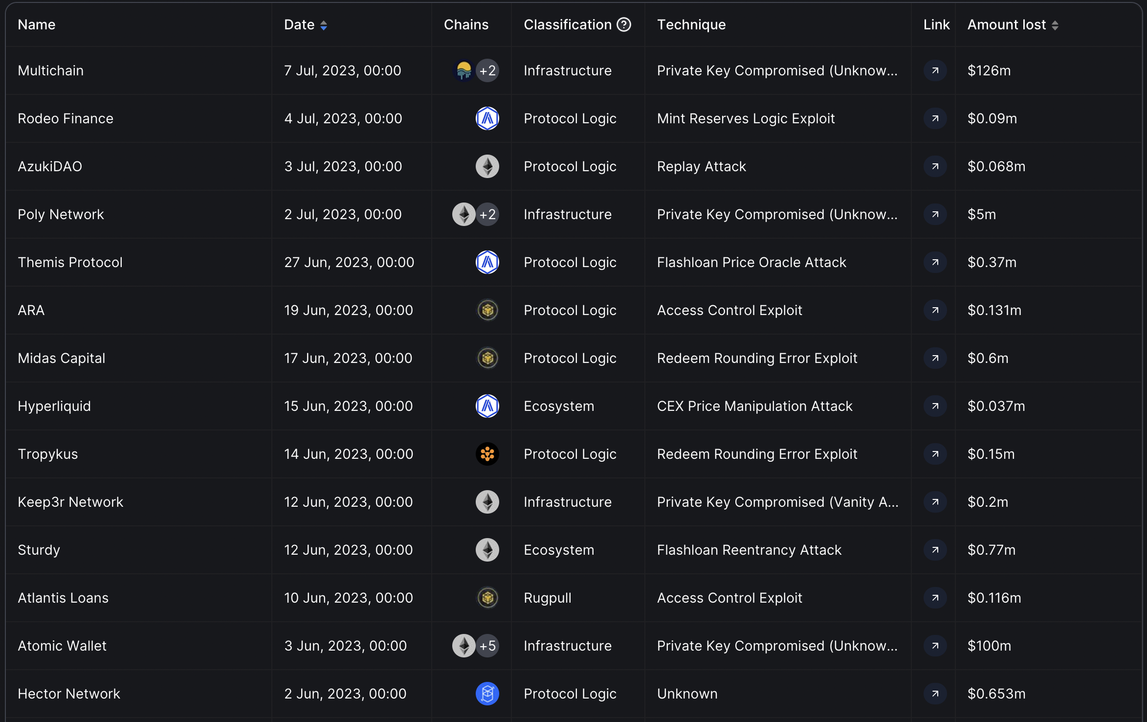 Here is the screenshot of the latest hacks that happened in blockchain, including the Multichain:
