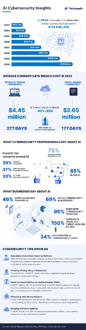 For more information, see the Techopedia AI Cybersecurity Insights infographic below: