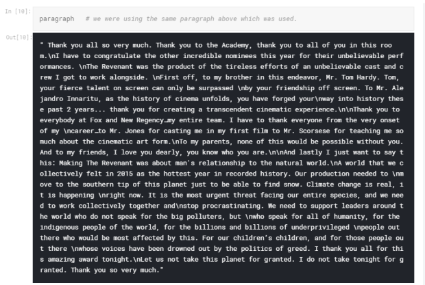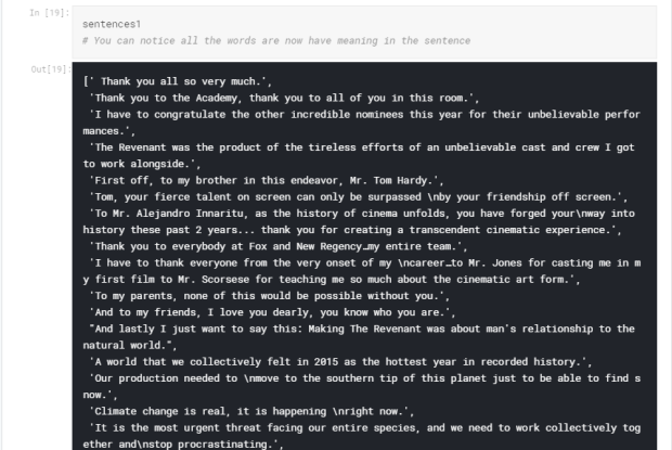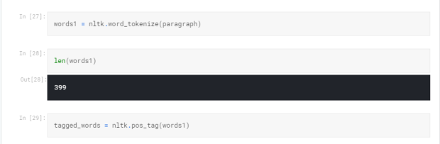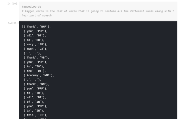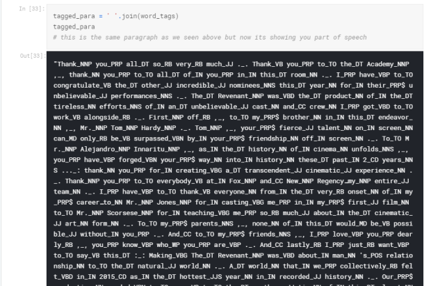 And we really can’t use them for formulating models so what we are going to do now is we will generate a whole new paragraph and there each of the words will be appended with their corresponding parts of speech.