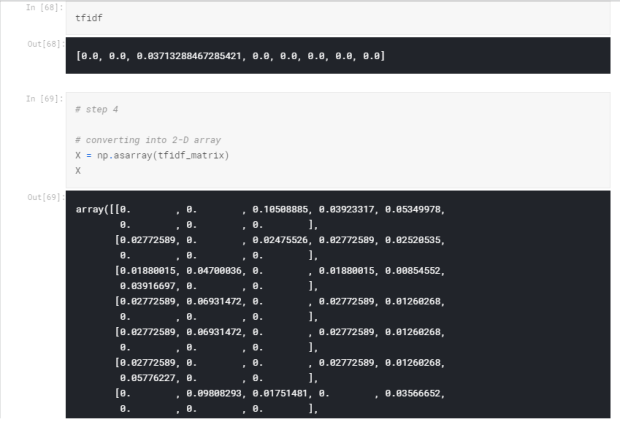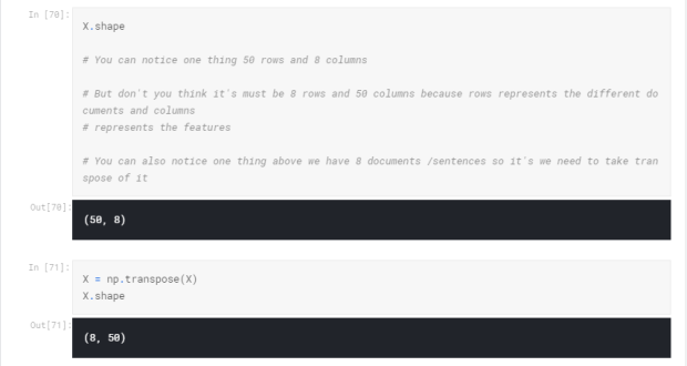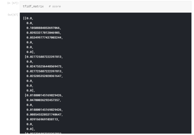 Actually, Tf value for ‘the’ is checked in all the 8 sentences which we got above