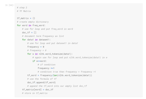 The formula of TF = Number of occurrences of a Word in a sentence / Number of the word in that document