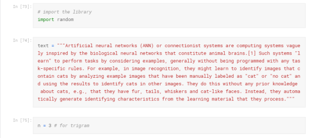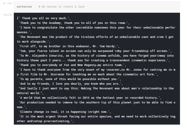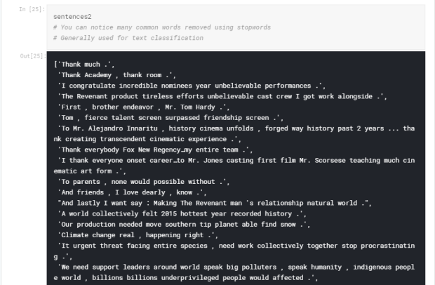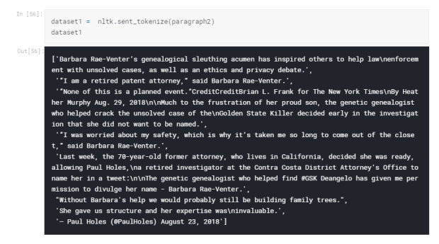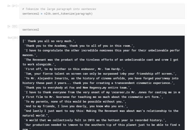In this process instead of tokenizing a paragraph based on “space”, we tokenize it based on “.” and “,”. Therefore, we get all the different sentences consisting of the paragraph.