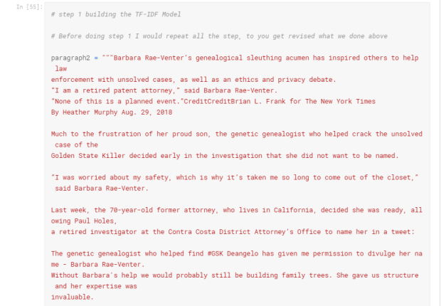 sentence 3 = none of this is a planned event creditcreditbrian l frank for the new york times by heather murphy aug 29 2018 much to the frustration of her proud son the genetic genealogist who helped crack the unsolved case of the golden state killer decided early in the investigation that she did not want to be named
