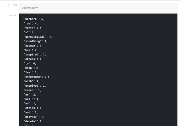 sentence = barbara rae venter s genealogical sleuthing acumen has inspired others to help law enforcement with unsolved cases as well as an ethics and privacy debate