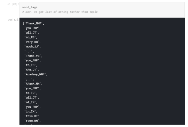 So we can easily get part of speech, but there is one problem that is output we get is a tuple