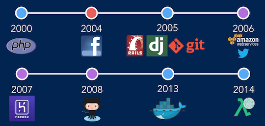 The key innovations over the past twenty years have been focused around a single target, developer velocity. To understand how these technologies and companies are aligned around this concept, we’ll take a brief walk through the past twenty years of web-based software development.