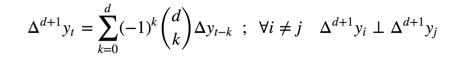 Similarly, the order-(d+1) differentiation of {y} is both memoryless and non-stationary for every d>0. Specifically, subsequent iterated differentiations read