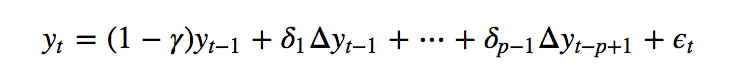 Regression model underpinning the Augmented Dickey-Fuller test.