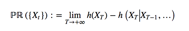 In the case of stationary time series, PR({X}) always exists and is given by the difference between the entropy of any observation and the entropy rate of the time series.