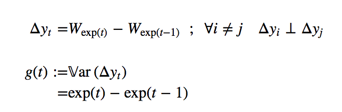 Example time series that cannot be made stationary by iterative differentiation. {W} is the standard Wiener process.