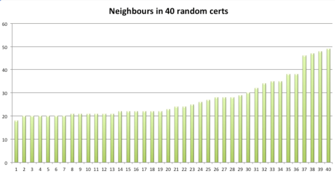 The median for the number of certificate “neighbors” was 23 but you can have as many as 48 of them.