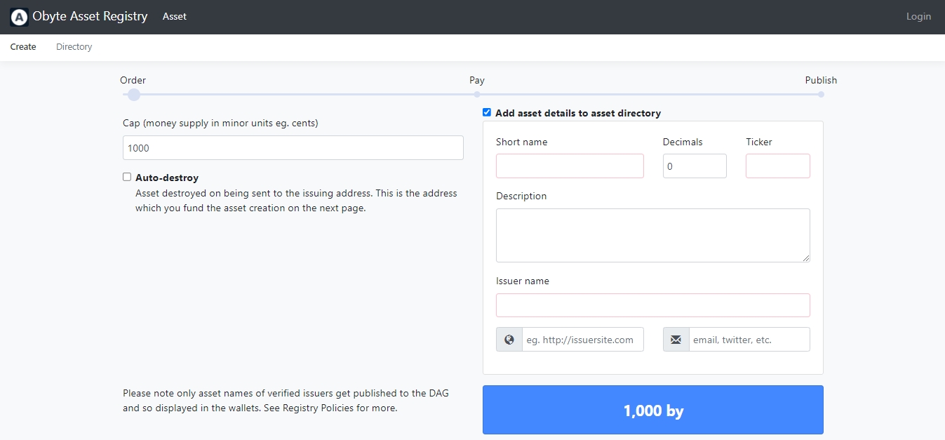 If you need your own customized asset for any reason (loyalty programs, crowdfunding, privacy features, etc.), Obyte also has that option available for anyone, without coding involved. With the user-friendly Obyte Asset Registry, it’s possible to create tokens representing real-world assets, loyalty points, or other forms of digital assets without the need for complex smart contracts.