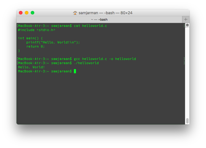 Basic C program — Hello World.