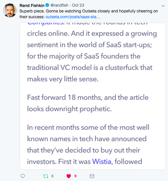 - We’re playing the long game — we set out to build Outseta with a genuine 10+ year mindset. We started to feel the impact of our content after about 18 months, which was OK because of this mindset.