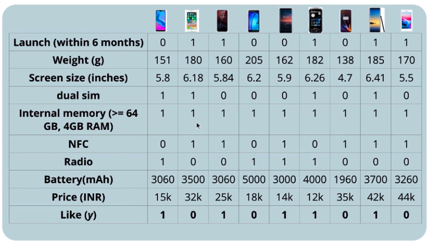 Generally, the relationship between the price of a phone and likeliness to buy a phone is inversely proportional (except for a few fanboys). For someone who is an iphone fan, he/she will be more likely to buy a next version of the phone irrespective of its price. But on the other hand, an ordinary consumer may give more importance to budget offerings from other brands. The point here is, all the inputs don’t have equal importance in the decision making and weights for these features depend on the data and the task at hand.
