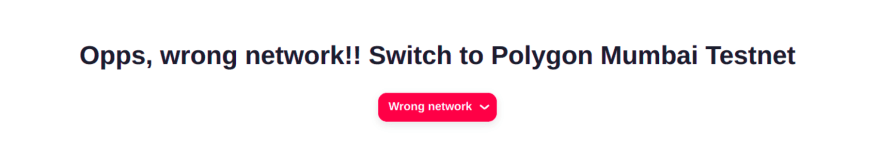 Opps, wrong network!! Switch to Polygon Mumbai Testnet