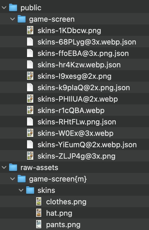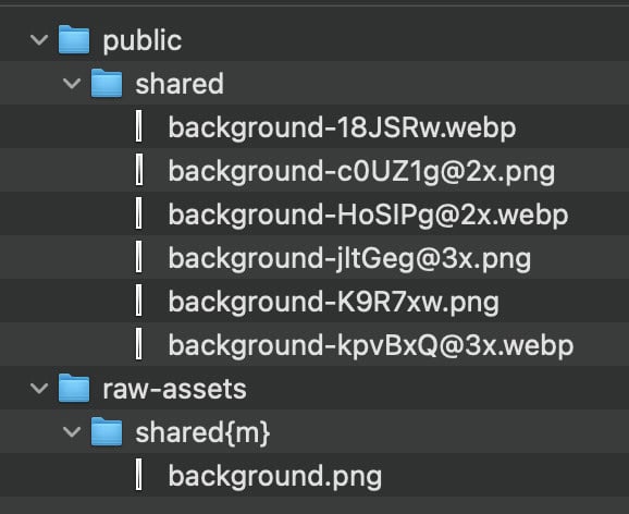 Next, create a folder called raw-assets in your project root. Each folder inside raw-assets will represent a bundle, and you need to specify it with a {m} tag. For our project, I created the following bundles: