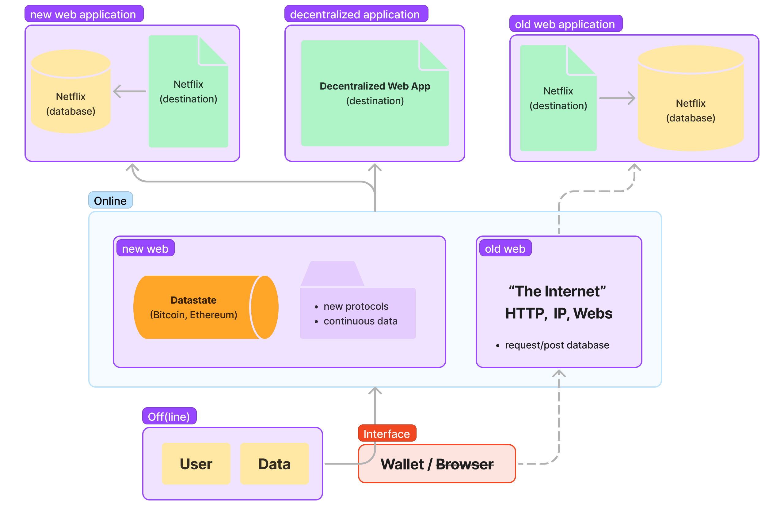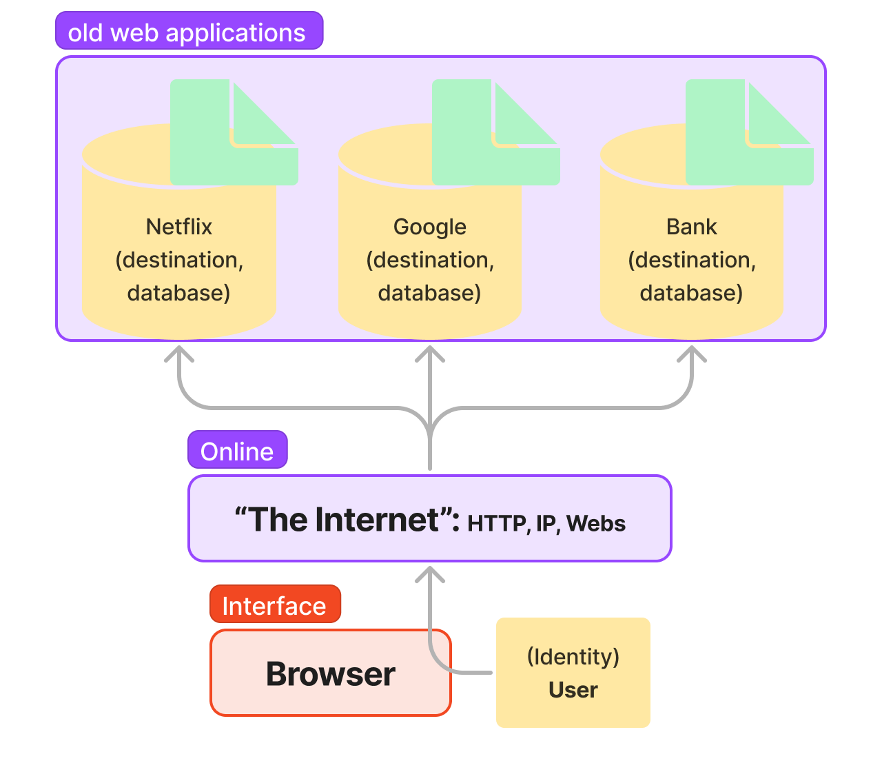 To simplify, the internet's experience today is finding a destination, a website, and signing up. The user performs operations that add to the sum of data collected for that website account.