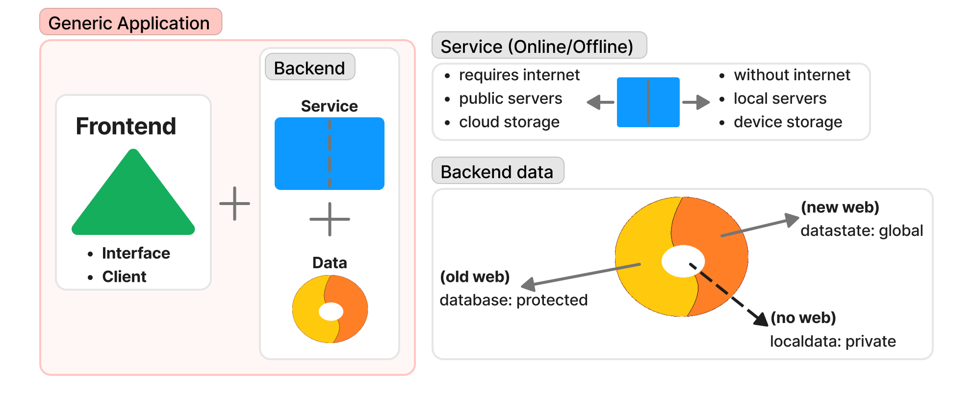 The surface level of app internals can be seen through a variety of lenses- Most recognizably is a separation between frontend and backend.