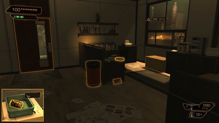 A video game example of a tag highlighting possible interactions or information (Deus Ex: Human Revolution)