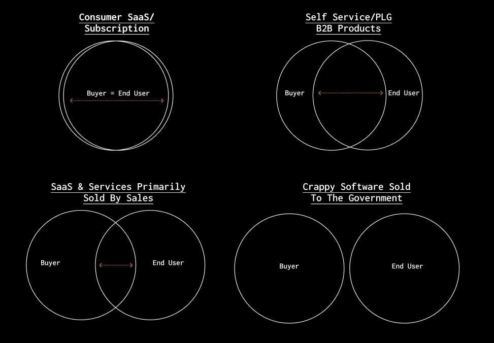 - How much overlap you have between the person who uses your products and the person who buys your products.