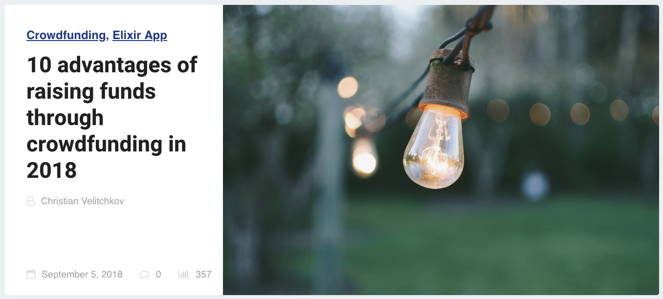 If you haven’t already, check out our new blog article 10 Advantages Of Raising Funds Through Crowdfunding In 2018. The article gives a detailed overview of the advantages of bringing an idea to life using crowdfunding. If you’re interested in reading about what separates ELIX from traditional crowdfunding companies, check out this article on the competitive advantages of tokenization.