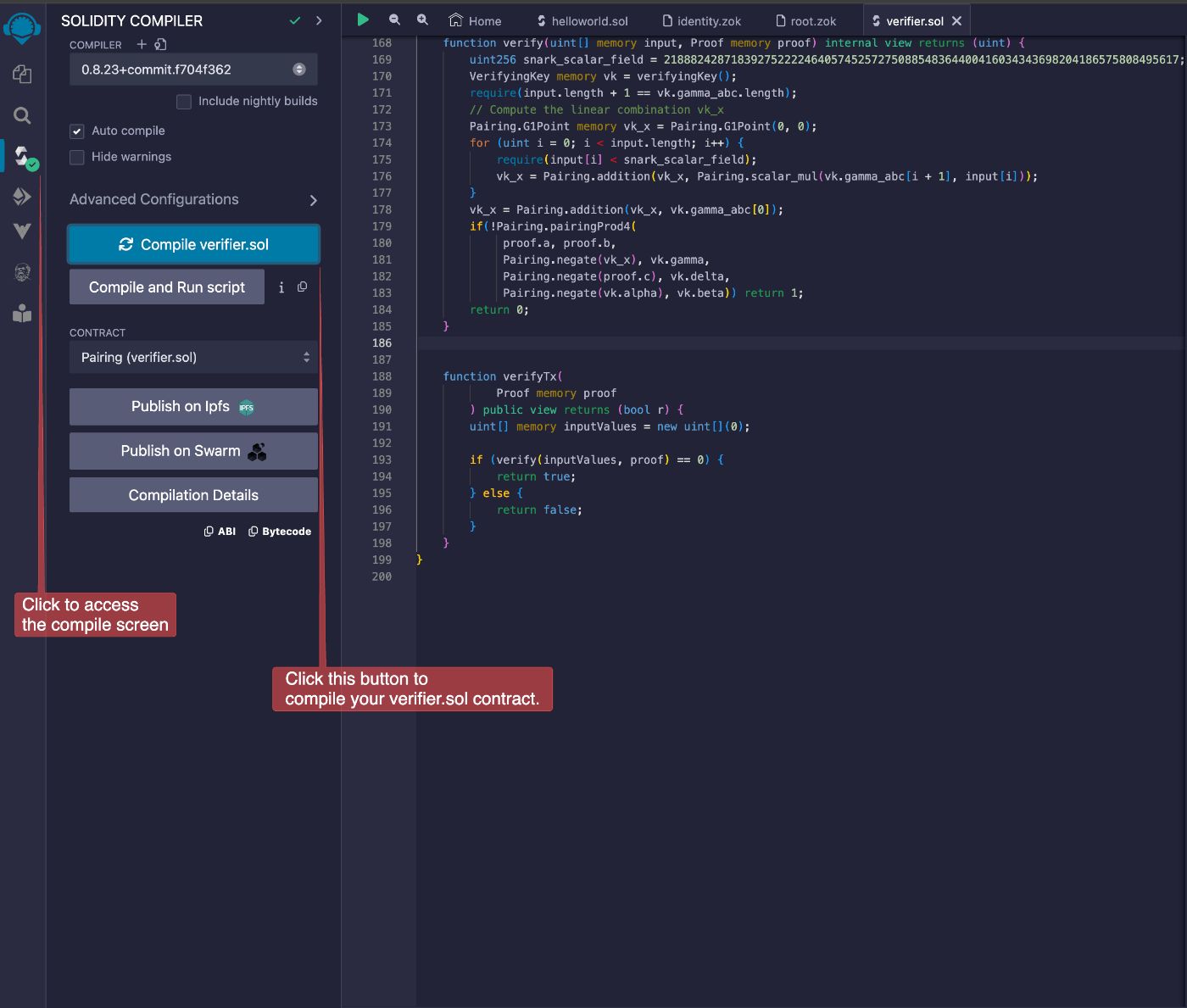 Solidity compilerand this button Compile verifier.sol