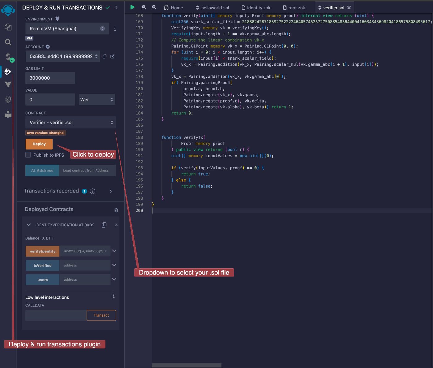 Deploy & run transactions plugin, and chooseVerifier — verifier.solfrom the dropdown list. Click Deploy.