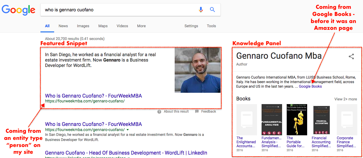 While this mechanism is still essential, today Google is finally able to extract meaning directly from web pages through a vocabulary called Schema.org. The meaning extracted from web pages become part of Google’s knowledge graph. That knowledge graph powers up Google search results and it also offers new visualizations that make users experience richer. Those experiences are also way more complete and compelling. Thus, Google for the first time can offer a whole journey on its search results pages. Even though Google is still calibrating this feature (like many others) that opens up a lot of questions for the publishing industry but also for the future of the web.
