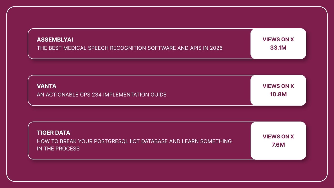 The brands publishing on HackerNoon cover a wide range of topics and formats.AssemblyAI wrote the definitive guide to medical speech recognition APIs. Vanta wrote an actionable playbook for a real compliance standard. Tiger Databroke a production database on purpose and explained what they learned. These stories earn attention because they're worth reading.