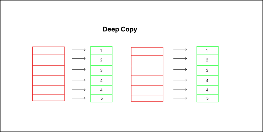 Using deep copy method: In the deep copy method, the process of copying takes place recursively. Firstly, a collection of objects is constructed based on the original list and then the child objects are copied and presented in the original list. In this method, a copy of objects is copied to other objects. Any change made to the copy doesn’t reflect back to the original list.