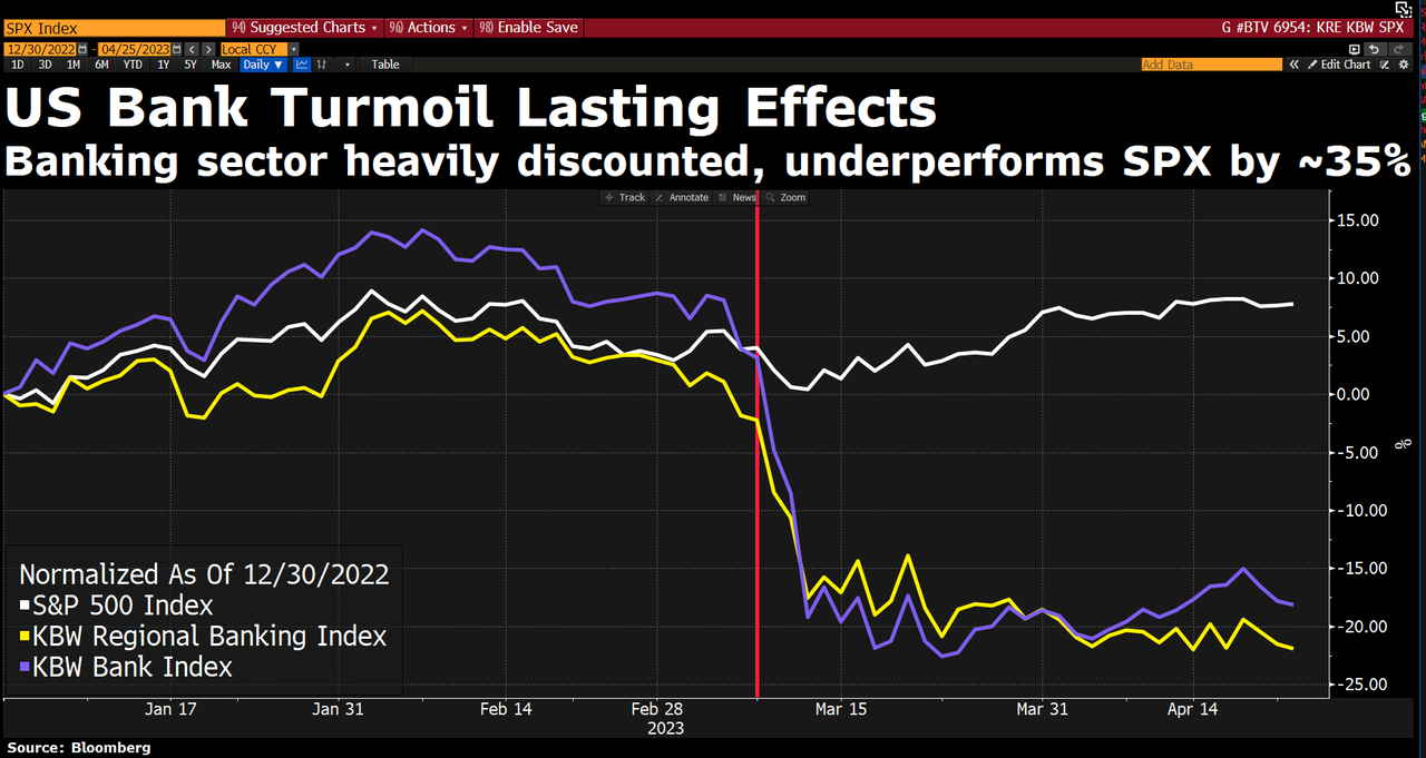 In Q1, the S&P 500, Dow Jones, and Nasdaq all performed strongly with the Nasdaq leading the increase due to the outperformance of tech stocks. Meta and Tesla shares both increased by over 60%. On the contrary, bank shares underperformed badly. Both the KBW Nasdaq Bank Index and the KBW Nasdaq Regional Banking Index suffered declines. We believe the US economy is at a crossroads in choosing between continued growth in the stock market and an economic recession and one of the largest risks the market will face in the upcoming months will be the US economy falling into stagnation.