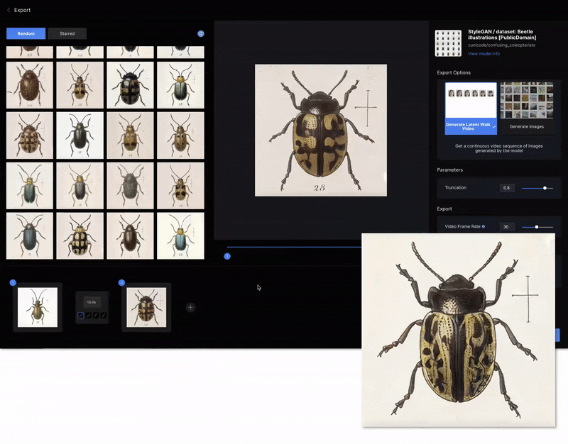 Runway AI is one such company, positioning itself as a platform for Machine Learning and enabling novel content creation techniques. Generative media features, as the company calls them, are part of a web interface that supports training a GAN model on your own dataset and collecting the results in the form of images or even videos – it can be very useful for content creators and other interested parties as it helps bing the capabilities of GANs to the masses (working with GANs without graphical UI may prove too inconvenient for most of the non-programmer users).