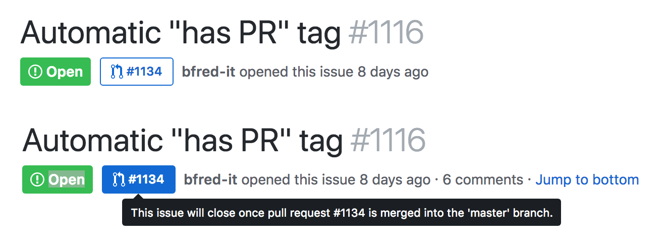 A link to the PR that will close the viewed issue can be seen prominently in issues and PRs. No more searching comment history to find the PR mention.